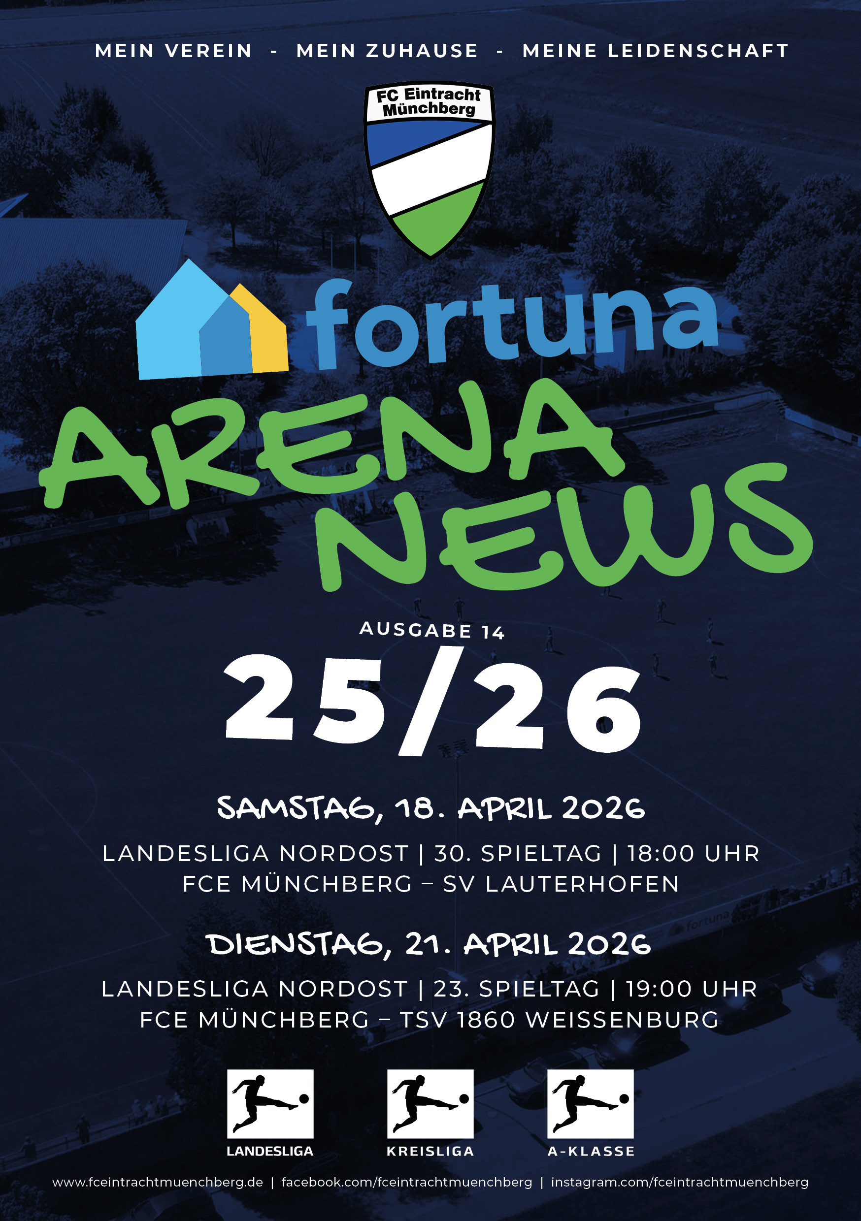 Zu jedem unserer Heimspiele erscheint eine neue Ausgabe unserer Fortuna Arena-News. Lest hier die aktuellste Ausgabe und erfahrt alles rund um den FC Eintracht Münchberg.